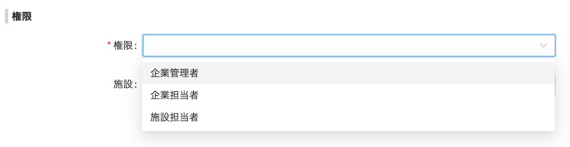施設担当者を登録する場合は、その下の施設から担当している施設を選択してください。
